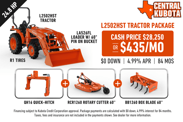At Central Kubota we pride ourselves on matching each customer's unique needs with the Kubota that serves them best. We strive to be a premier retailer of tractors while implementing services that offer a lasting value to our customers. Our goal is to exceed customer's expectations today and into the future.